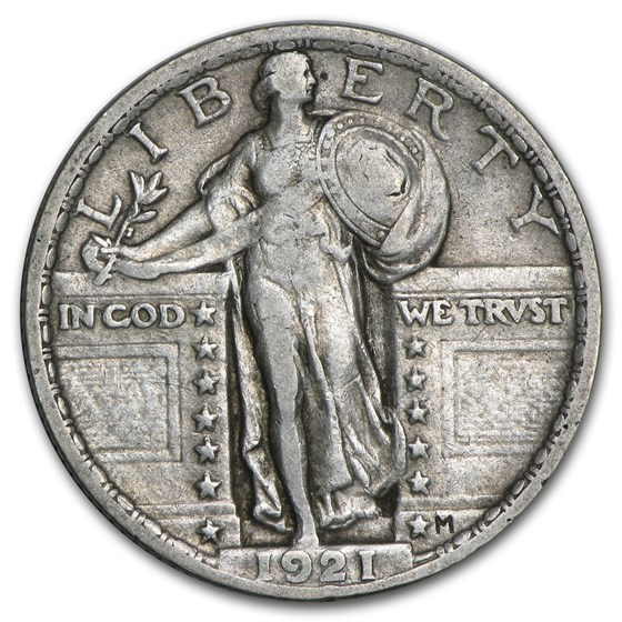 Obverse: A striking Standing Liberty—her shield symbolizing defense, right foot forward representing progress. Early versions (1916-1917) show her bare-breasted; later issues (1917-1930) add a chainmail cover, making the 1916-1917 coins rare design variants.