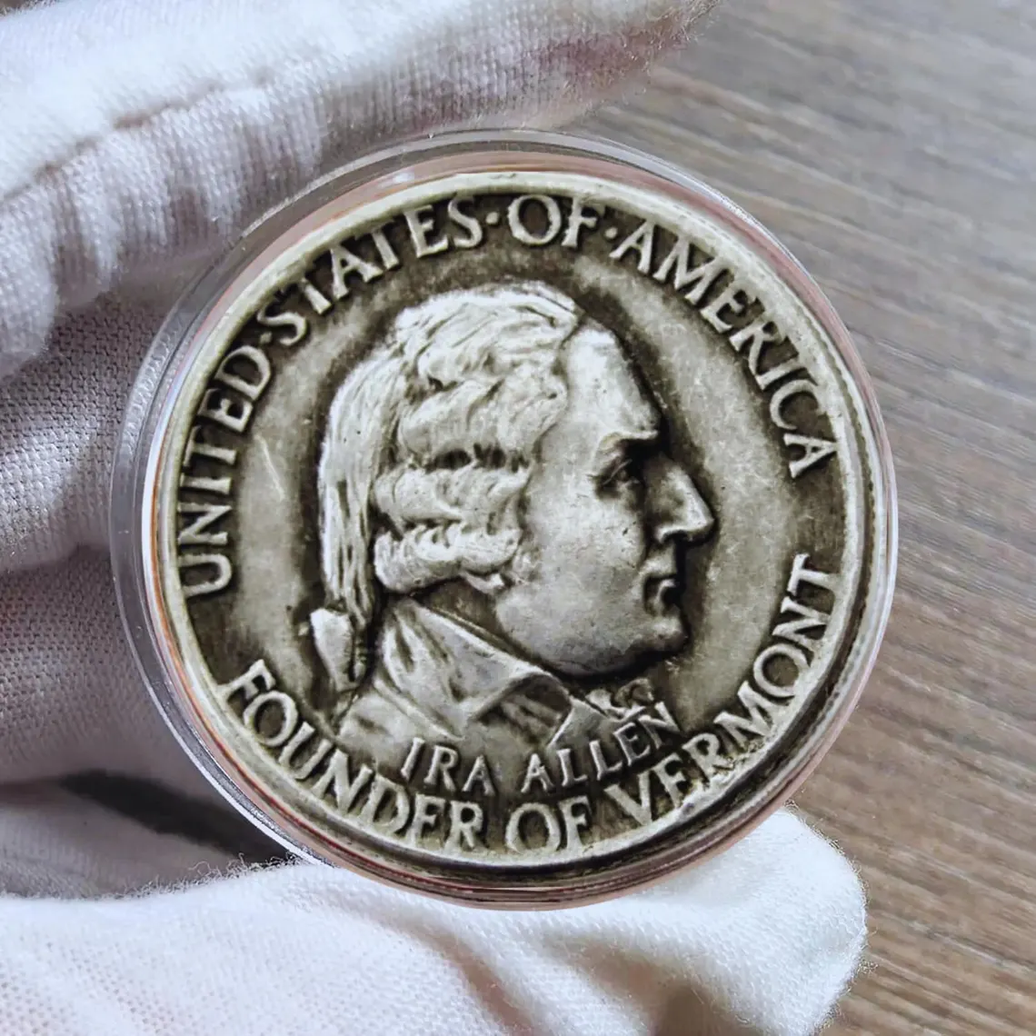 The 1927 Vermont Quadricentenaire Half Dollar holds a special place in commemorative coin history, not just for its purpose but for its artistry. Minted for a limited time to mark the quadricentennial, its mintage was relatively small, adding to its allure for collectors today. What sets it apart is its focus on a regional story with national significance: Champlain’s exploration laid groundwork for European settlement in the Northeast, and the coin captures that narrative through vivid design. The obverse’s portrait of Champlain is rendered with fine detail—from his period attire to the determined set of his jaw—while the reverse’s lake and mountain scene feels almost like a miniature landscape painting, with crisp lines that bring the terrain to life. Crafted from 90% silver and 10% copper, it has a substantial weight (12.5g) and a warm, natural luster that develops a rich patina over time. Unlike generic old coins, it’s a “story coin”—one that sparks conversations about exploration, geography, and how we honor the past. It’s perfect for display in a collection, gifting to a Vermont native, or adding depth to a set of 20th-century commemoratives.